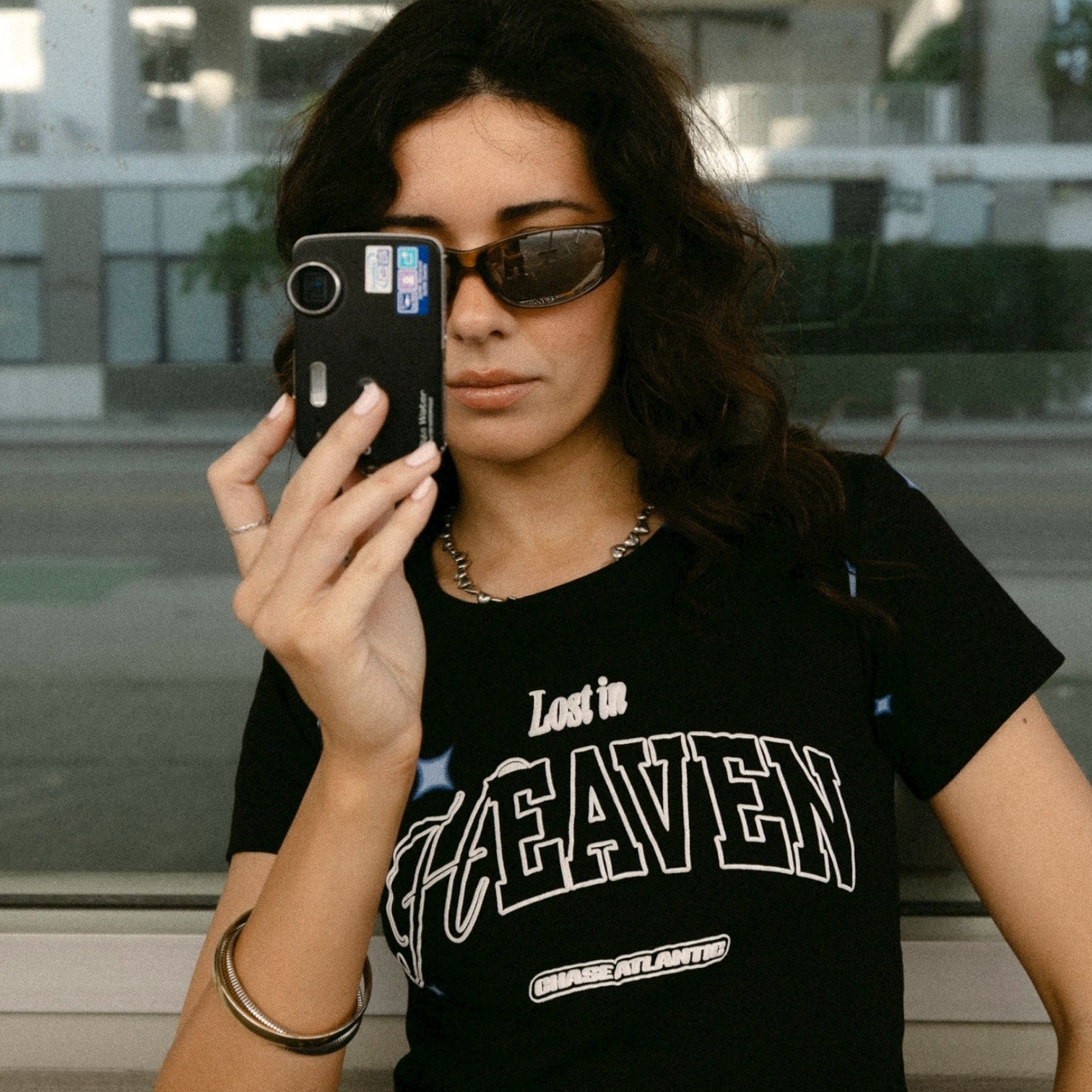 Fully custom baby rib cropped tee with a fitted silhouette and soft black fabric. Features blue star accents across the front and back. Finished with a puff printed Lost In Heaven graphic across the front.