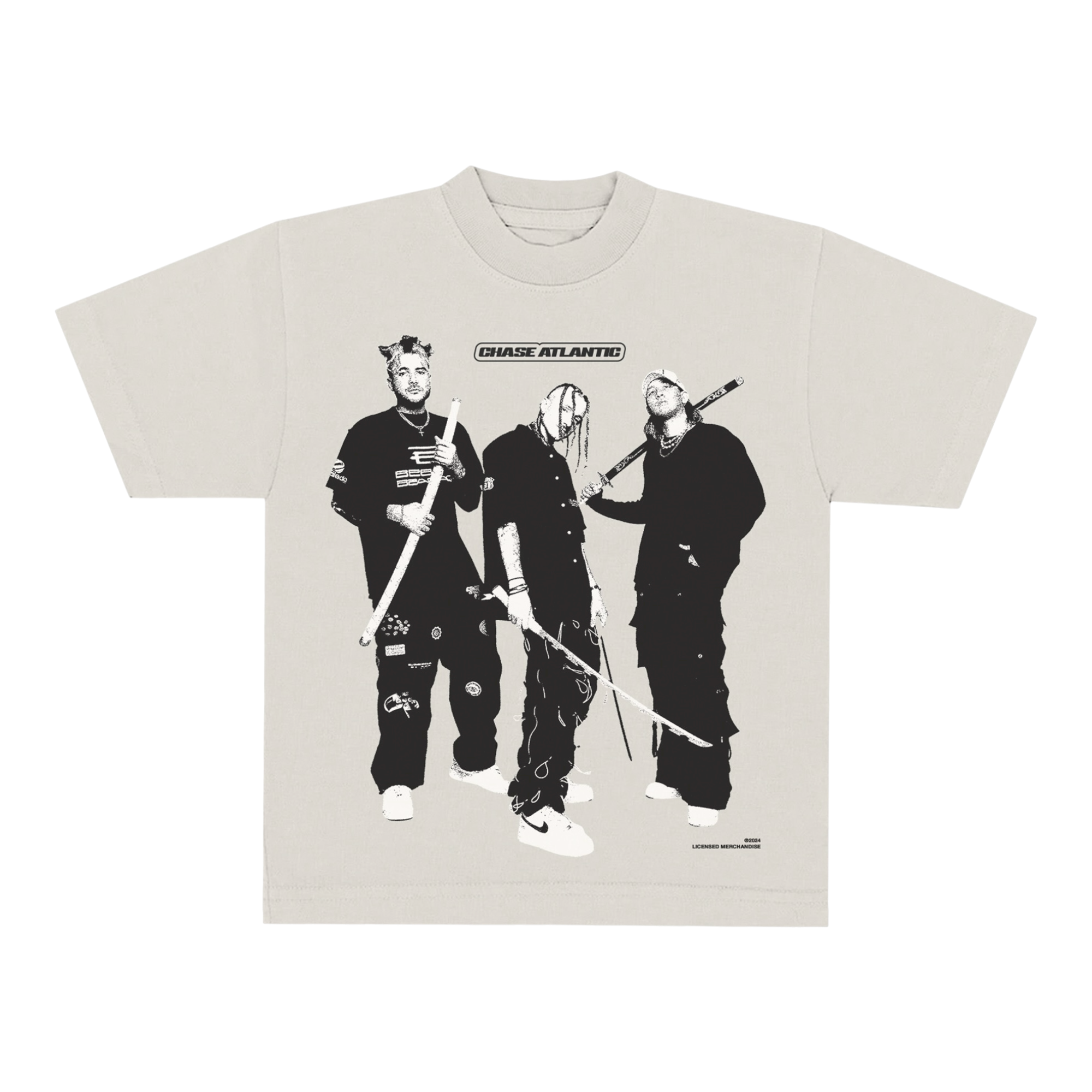 Unisex garment dyed tee featuring an oversized Chase Atlantic photo design on the front.